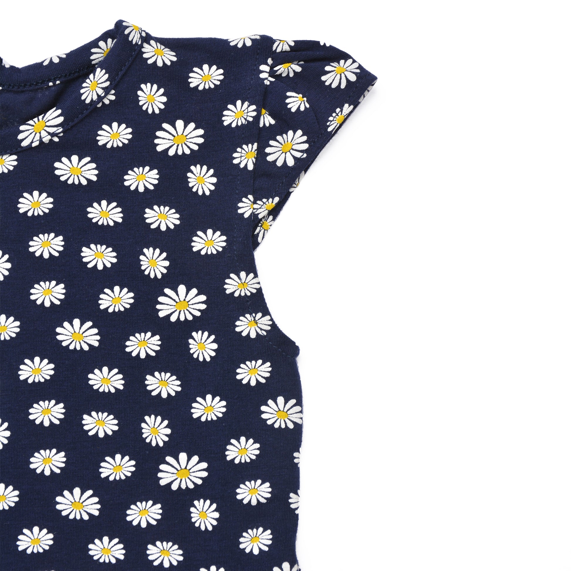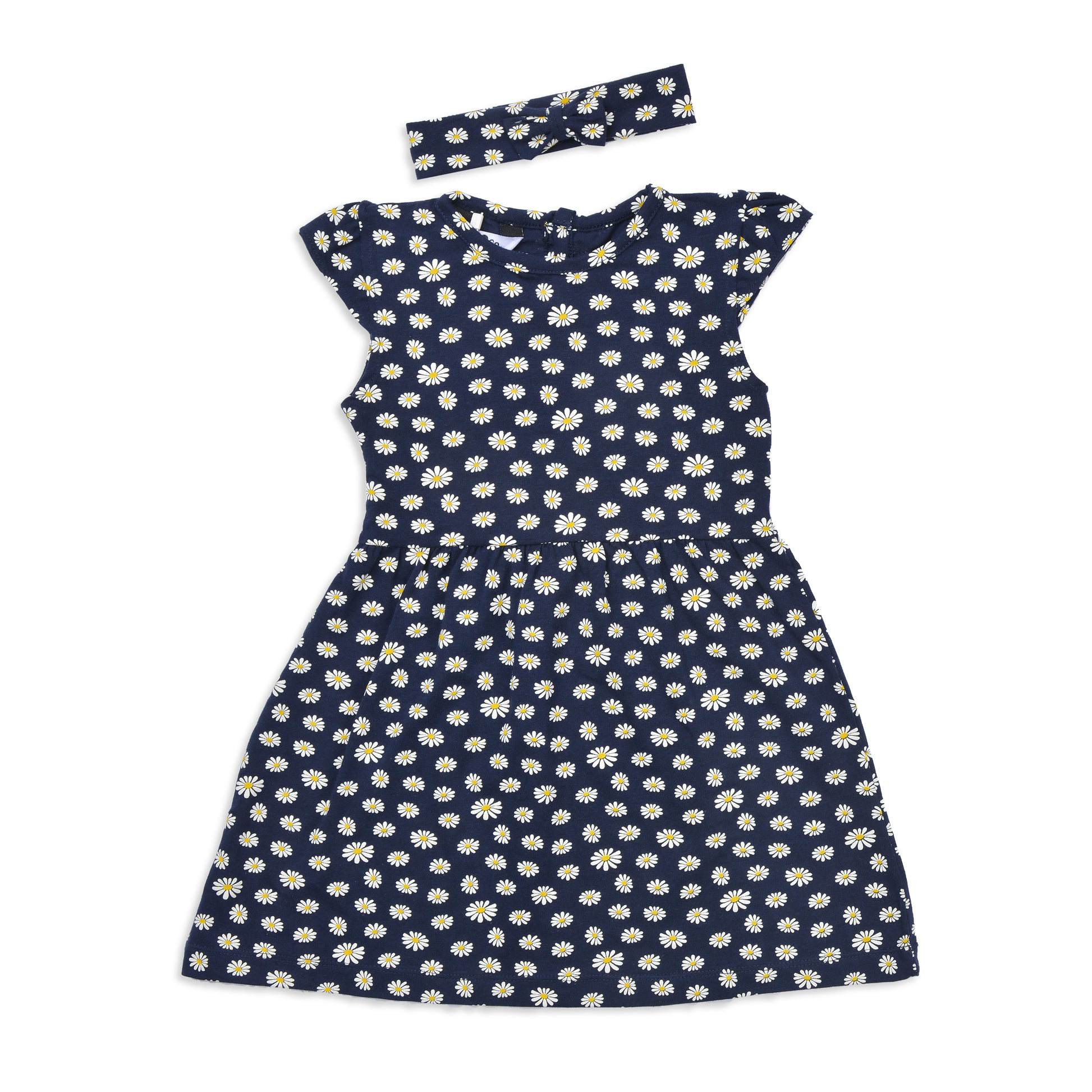فستان مطبوع عليه زهور زرقاء مع رباط رأس
