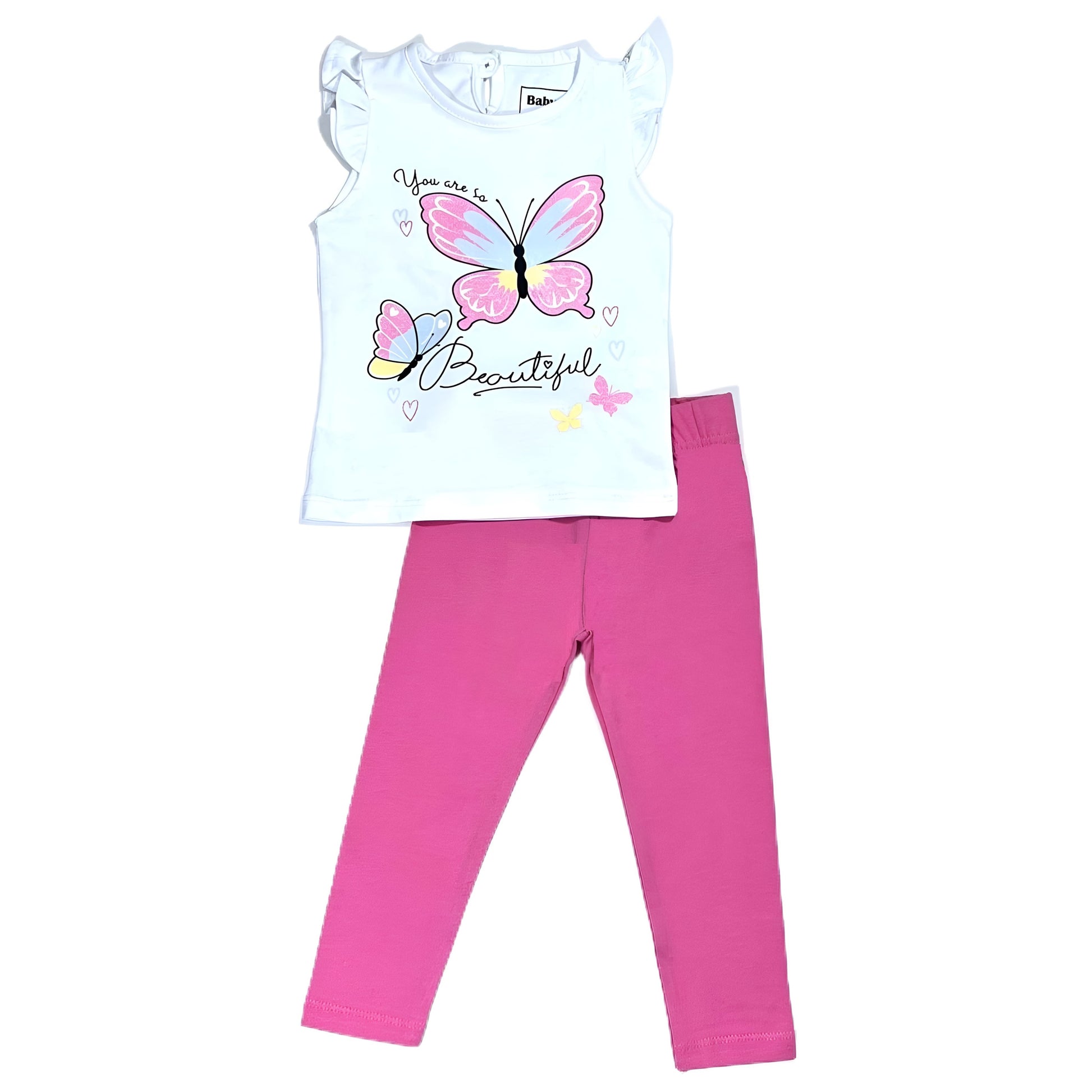 Butterfly Cotton Baby Set (White T-shirt + Pink Leggings)