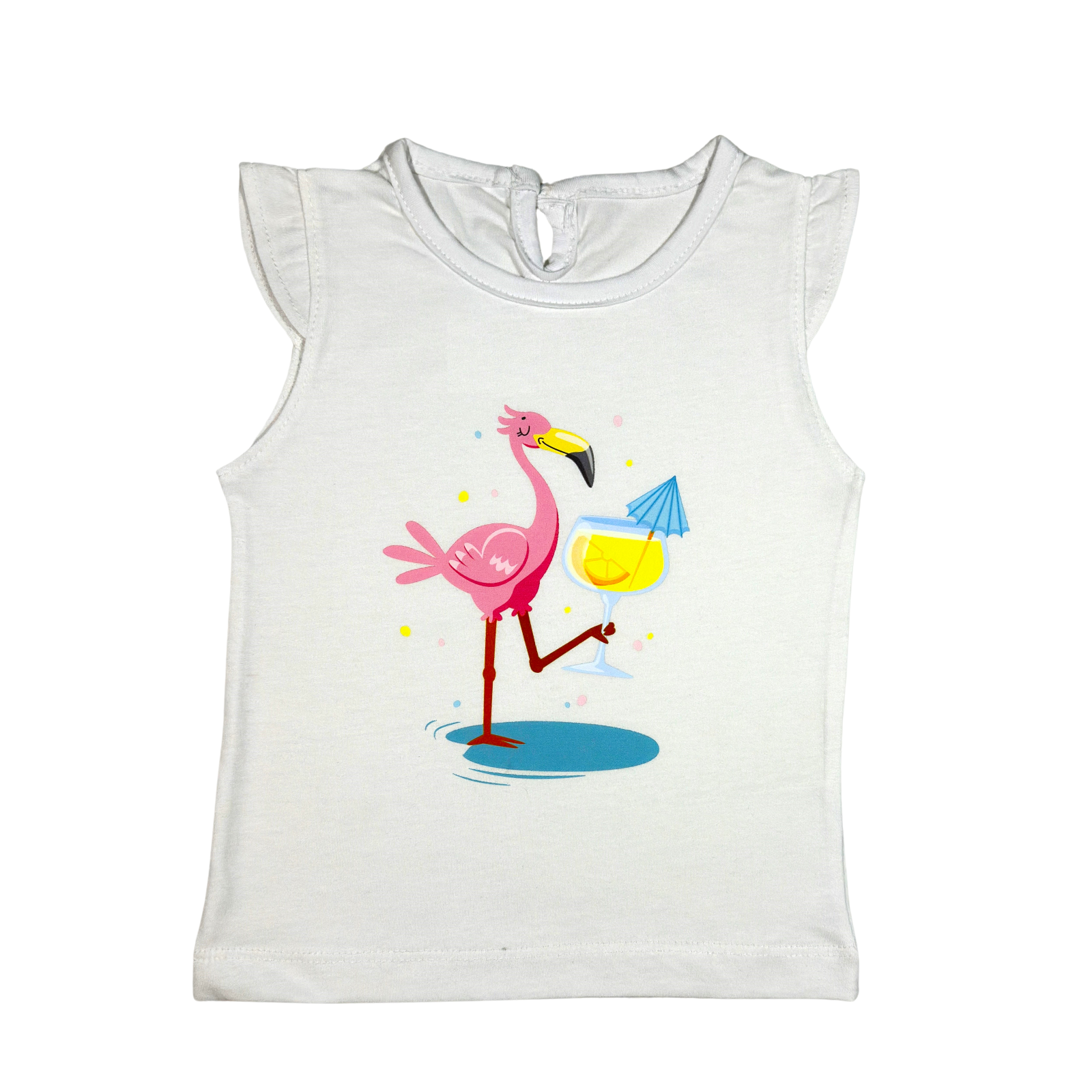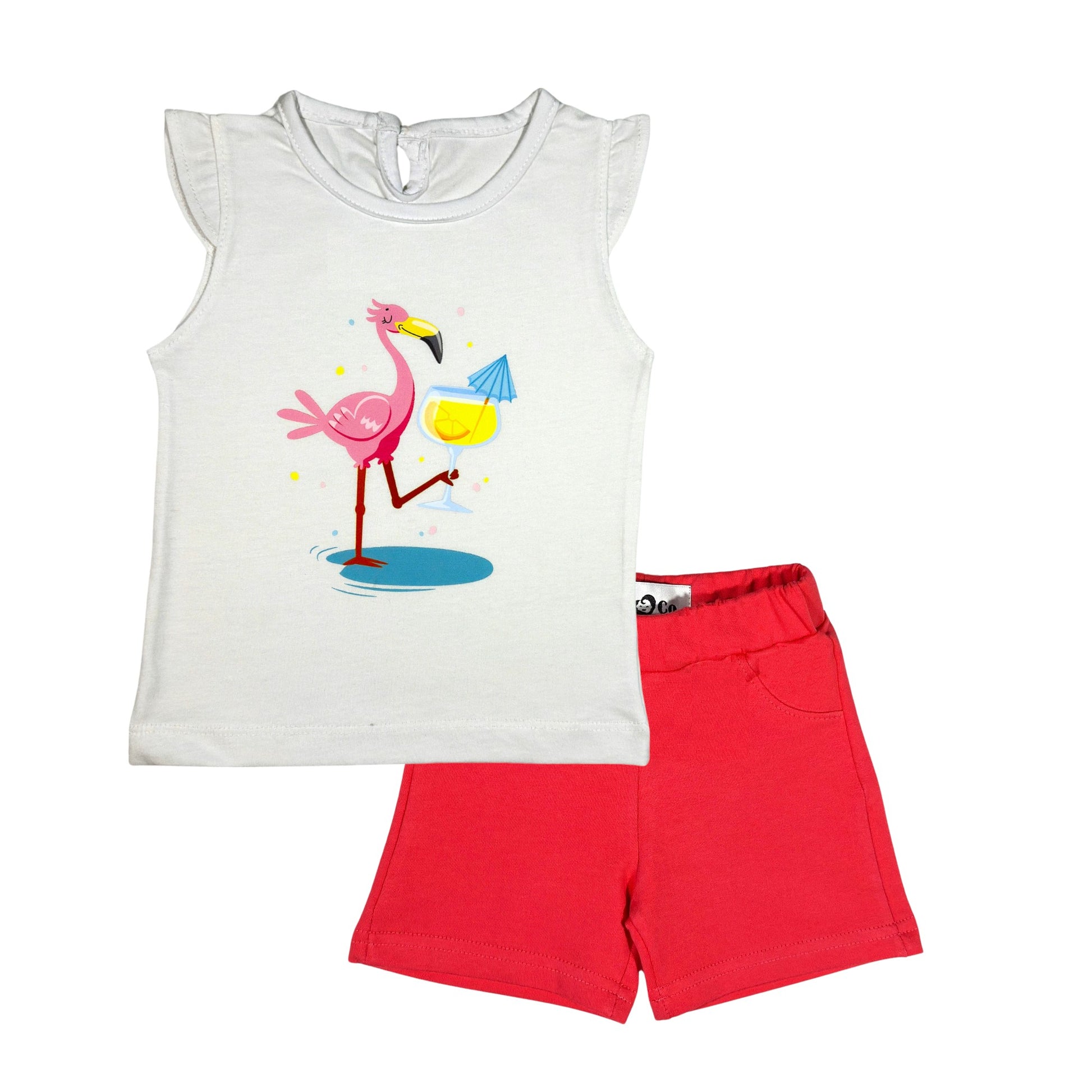 Flamingo White T-shirt Short Set (White T-shirt + Pink Shorts)
