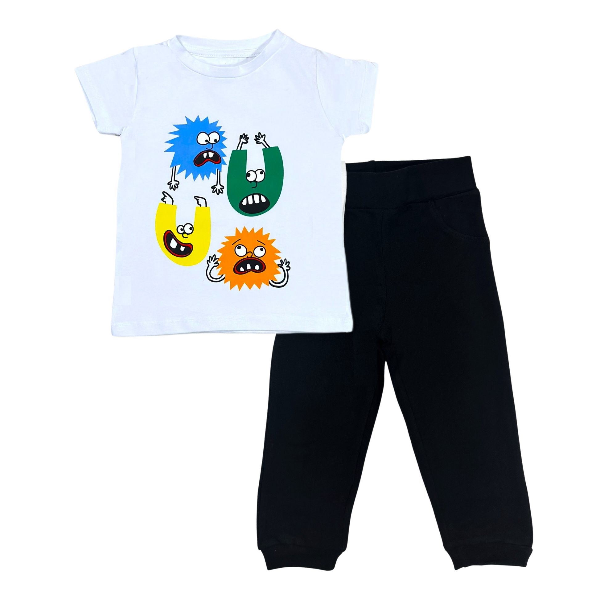 Monsters Cotton Set (White T-shirt + Black Sweatpants)