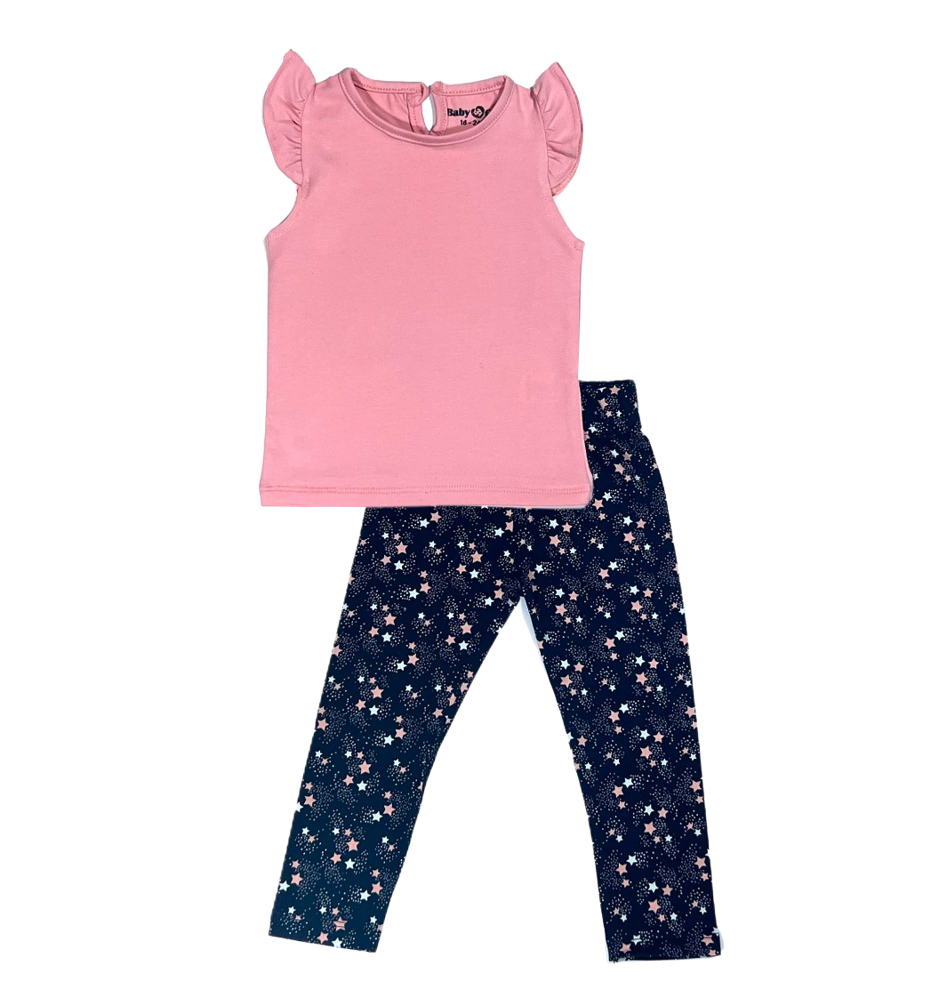 Stars Cotton Baby Set (Pink T-shirt + Black Stars Leggings)
